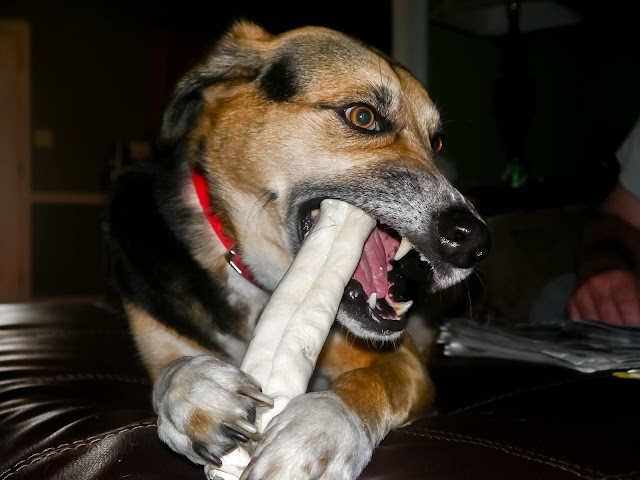 Here is Albus enjoy his bone when all the burying, digging, sniffing, running, etc. was done and over with.